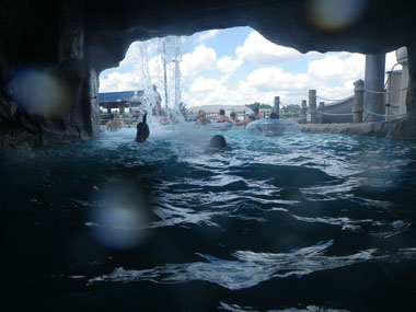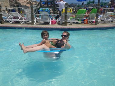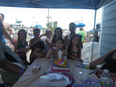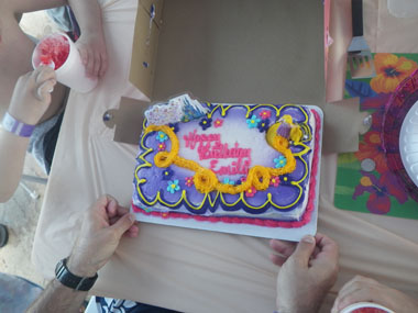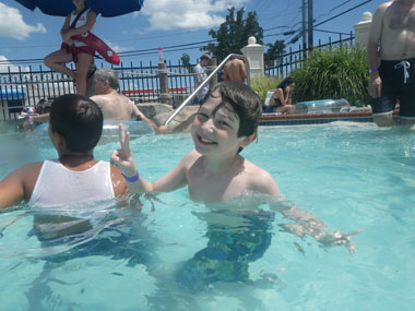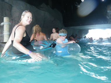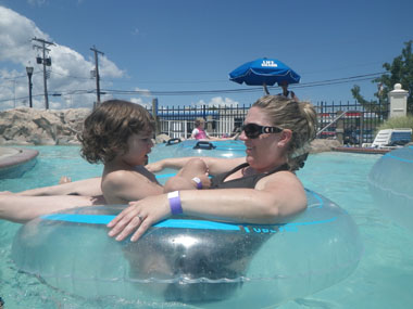 with cupcake in hand!Moving on to Emily's birthday the following day at Chesapeake Beach Waterpark! Nicholas loved the water! Ewwww, scary tunnel! Mom and Zachary enjoying one another! Wow, what a lovely cake, Emily!!! Some of Emily's guests! Kind of a dark pic, but more guests Grandma and her friend, Ali, having fun Grandpa and Zachary discovering the water