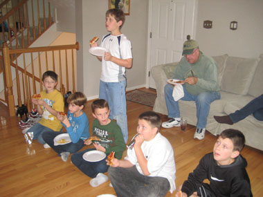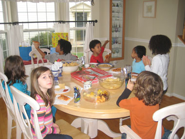 Family -- Nicholas' 10th birthday party 2011 Nicholas with half of the group watching tv and eating pizza - what a guy thing! Emily enjoying her pizza with Zachary to her right Colorful cake! Nicholas getting ready to decorate!! Everyone is getting in on the act phone: 410-610-2534 email: shar@sharonmunro.com 8339 Bay Crest Ct. Chesapeake Beach, MD 20732 Home Family Friends "Away Games" Beach Life Links