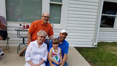 Is this picture leaning, or is it just me. Mom/Grandma with Jim, Jon and June.