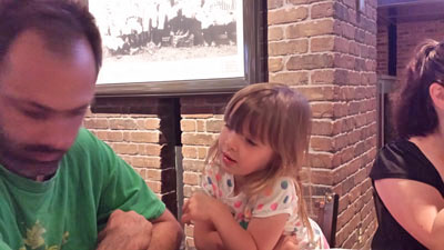 | Granddaughter, June, REALLY wants to know what daddy's ordering! |
