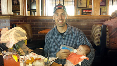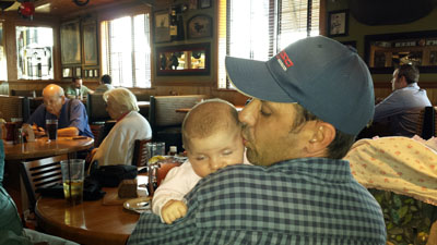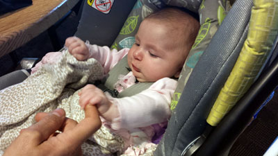 New granddaughter, Jillian Marie, holding onto Daddy's hand for all she's worth. I think she wants him to order a burger for her.