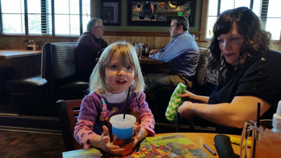 Jillian and mom - I think Jillian's saying, "So what's the big deal with the White Castles???"