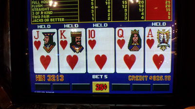 Oh, and let's not forget that wonderful feeling of hitting a royal. I took the picture while the credits were still rolling up. The total for a royal is $1,000! Duh, it has been so long since I've seen one.
