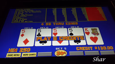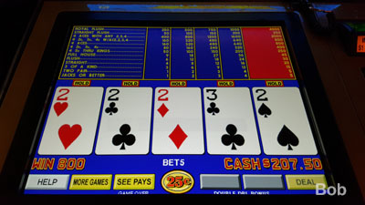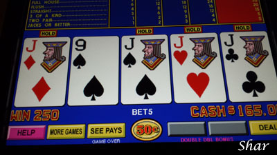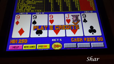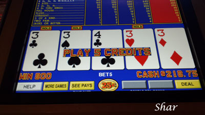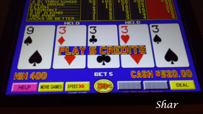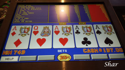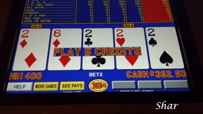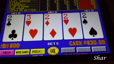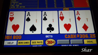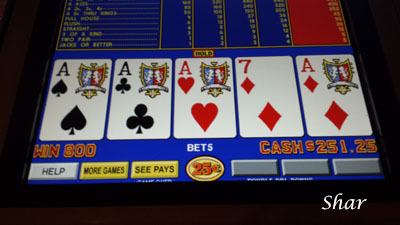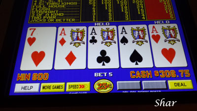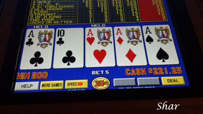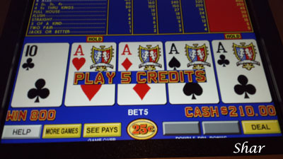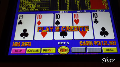 Following are some of my decent hits and hands that were actually DEALT to me (quarter, fifty cents and dollar) - for the video poker afficianados only.