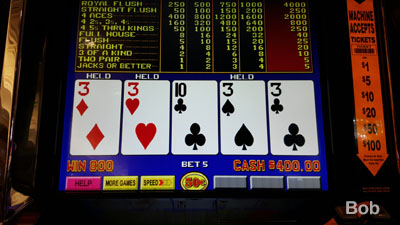 Ultra Bonus (found only at the Cal as far as we know) offers 800 coins for 2-4s (no kickers) and 2000 coins for Aces.
