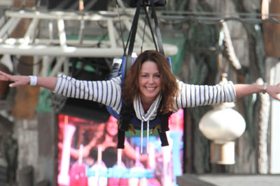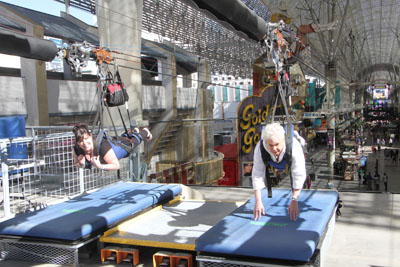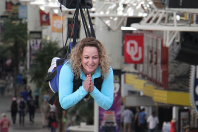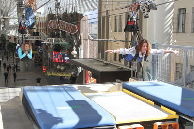 (Above) Bob was able to capture 13 seconds of Annie, Lisa, Jen and me zip lining down Fremont St. What an exhilarating experience (and a little scary, too). At one point, we were 77 ft. above the street. I simply yelled, "Oh my God" the entire way.