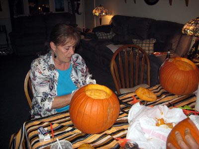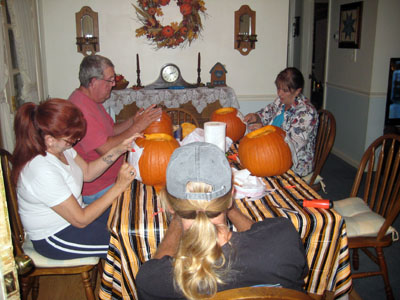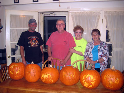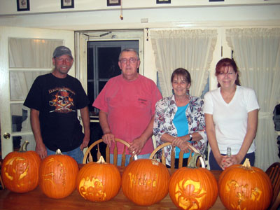 | Time to get started on our pumpkin carving - From left, Karen, Bob, Taddy and Bobby - he's the one with the hair to die for!! |
