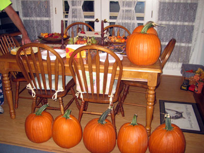 | Virginal, untouched pumpkins waiting to be attacked by 6 adults who know not what they're doing!! |