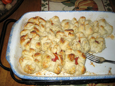 One of the many treats Karen and Bobby had in store for us - mini pizzas inside biscuits. So pretty! |