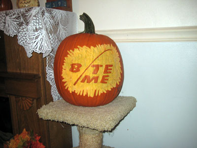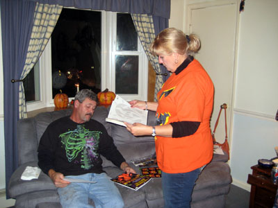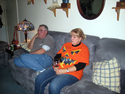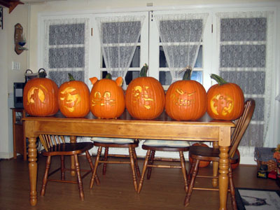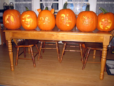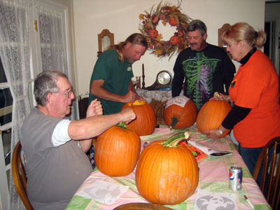 It's not uncommon for those of us who have just finished carving our pumpkin to display that glazed look!! We look forward to this next year and our thanks to Karen and Bobby for the pumpkins, the great food and the friendship. |