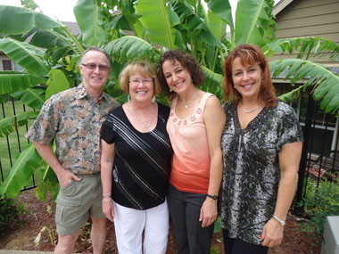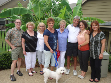 | More fun checking out Al's pool and clubhouse (Rusty, Sue, Linda with dog, Shar, Al, Lisa, Annie) |
