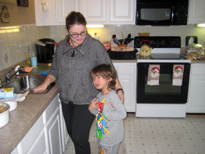 | Bob's daughter, Chris, her husband, Roger and our 3 grandchildren joined us on Christmas. This is Em having a quiet moment with her earphones and surrounded by goodies (note Shar's new popcorn maker on the floor behind her from Karen and Bobby). |